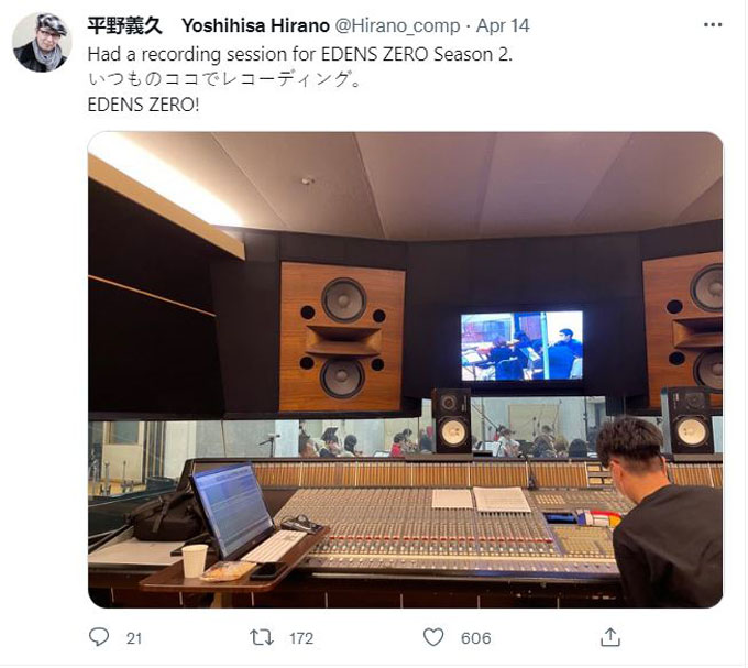 Le compositeur de musique a révélé à la mi-avril 2022 que le l’enregistrement de la musique de la saison 2 d’EDENS ZERO avait commencé. Crédit photo : Yoshihisa Hirano