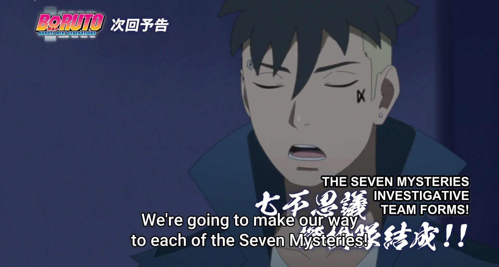 Comme mentionné précédemment, l’école Kawaki ninja academy les jours se poursuivront dans Boruto: Naruto Next Generations Episode 264. Pour être plus précis, Boruto: Naruto Next Generations Episode 264, en particulier, va se concentrer sur de nouvelles activités nocturnes. Le titre de l’épisode 264 de Boruto: Naruto Next Generations est”Les formulaires de l’équipe d’enquête des sept mystères”. L’aperçu de l’épisode 264 de Boruto : Naruto Next Generations nous a montré qu’il y a sept mystères dans les écoles de l’académie Ninja, qui sont effrayants.