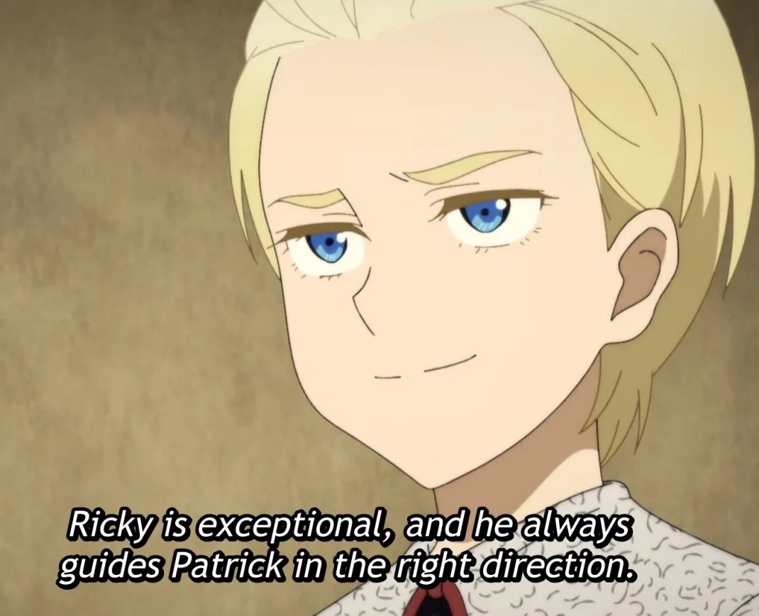 Si Louise est plus intéressante et amusante que je ne le croyais au départ. La relation entre Patrick et Ricky est probablement la plus intéressante parmi les quatre principaux Shadows. Tout le monde a une variante d’amitié où l’Ombre tient toujours le dessus. Cependant, Ricky est clairement le dominant dans son couple et pour le moment, je ne sais pas à quel point les deux s’aiment. Patrick semble certainement respecter Ricky mais il a aussi un peu d’appréhension à son sujet. En revanche, Ricky semble considérer Patrick plus comme un élément nécessaire pour réussir dans Shadows House et pas beaucoup plus.