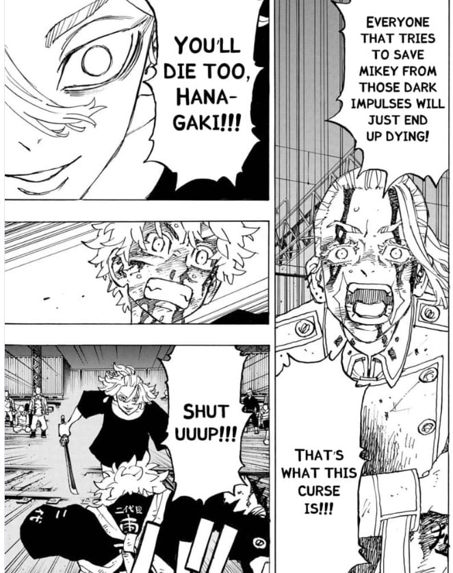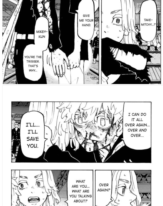Dans cette instance et cette chronologie, Mikey commence à se soumettre à ses impulsions sombres, leur permettant de prendre le contrôle de ses actions et de ses processus de pensée, remplaçant son sens de soi et sa boussole morale. Takemichi est peut-être un héros assez solide en tant que personnage dans l’ensemble, surmonté même par son ennemi juré appelant Takemichi un”héros”, et Takemichi est définitivement fort à sa manière-mais il est indéniable qu’il ne peut pas affronter Mikey dans un combat.