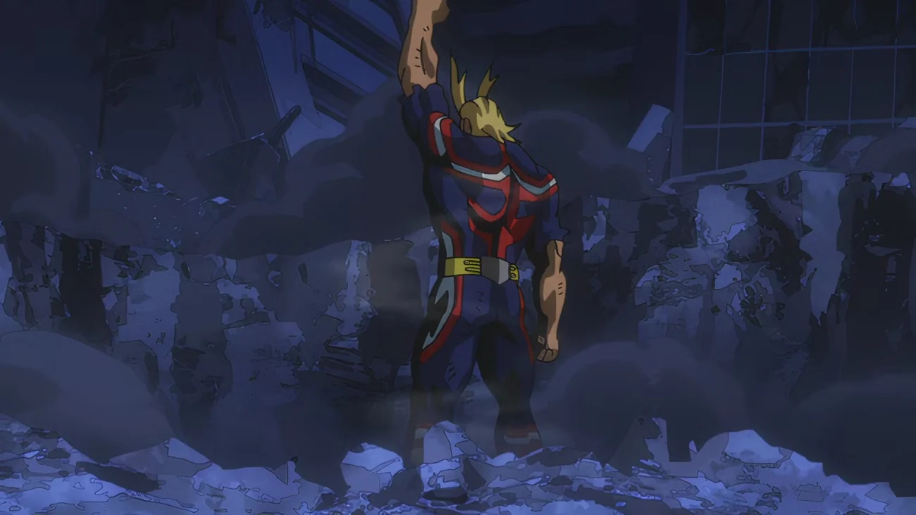 Les confrontations répétées d’All Might avec All For One définissent l’équilibre de pouvoir moderne entre héros et méchants. Une rencontre précoce, presque fatale, a laissé All Might avec des dégâts internes qui ont limité de façon permanente la durée de sa forme de héros, façonnant sa dépendance ultérieure à des engagements de précision et à un mentorat.