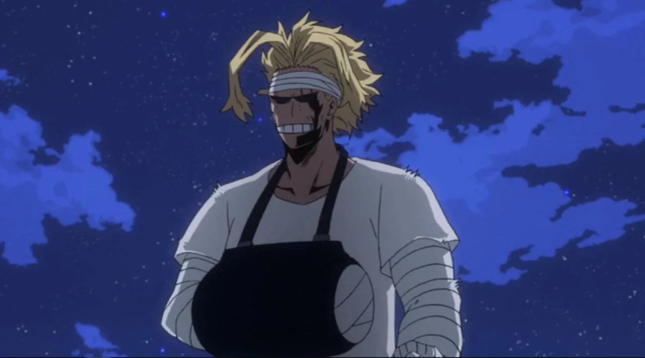 La bataille de Kamino Ward a marqué sa dernière utilisation publique des braises restantes de l’alter, culminant avec les États-Unis de Smash pour neutraliser All For One et permettre sa capture. Il a utilisé des gestes et des mots codés pendant le combat pour rassurer les civils et signaler la transition vers une ère de succession, préservant ainsi la confiance du public même à la fin de sa carrière active.