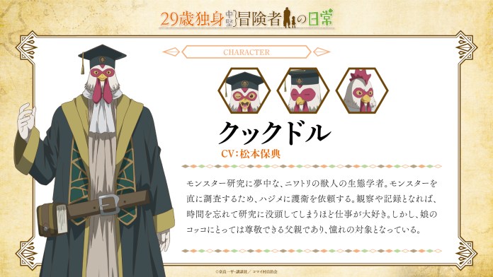 Dua anggota pemeran baru telah diumumkan untuk serial anime TV The Daily Life of a Single 29-Year-Old Adventurer mendatang. Anime ini dijadwalkan tayang perdana di Jepang pada Januari 2026.
