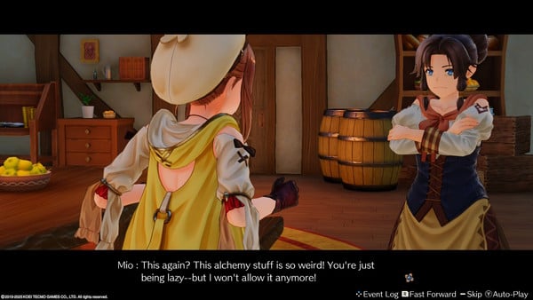 Dan tentu saja, ada Item Synthesis, mekanisme pembuatan item melalui alkimia di seluruh seri. Di sini, Ryza dapat mengikuti resep dan bahan-bahannya untuk membuat item, dengan penyebaran elemen yang lebih baik dari bahan-bahannya menghasilkan item berkualitas lebih tinggi dengan sifat yang lebih baik. Resep lama juga bisa diubah menjadi resep baru jika Anda memiliki bahan yang tepat. Ini adalah sistem yang menyenangkan, dan kemajuan dalam game memberikan bahan-bahan baru yang dapat membuat item lama menjadi lebih baik. Sistem Ryza 1 yang membeli dan membaca buku untuk mempelajari resep baru dan meningkatkan kemampuan alkimia Anda melalui sintesis item terasa lebih seperti sebuah tugas dibandingkan dengan game selanjutnya, membuka resep dengan pohon keterampilan; game selanjutnya berjalan lebih baik dalam memberikan sintesis sentuhan adiktif yang mendorong eksperimen dalam produksi item.
