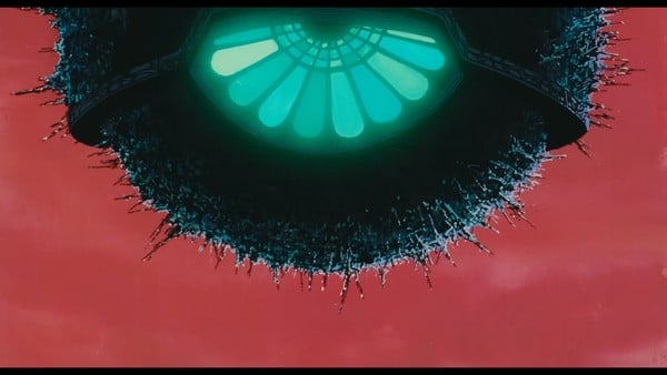 Saya senang Anda menyebutkannya, karena ini memberi kita tempat yang baik untuk menyebutkan bahwa suara pada rilis teatrikal Angel’s Egg adalah alasan lain yang luar biasa untuk melihatnya dalam format ini. Jeritan yang Anda sebutkan itu membuat saya dan orang lain benar-benar terlonjak ke dalam teater, tetapi keseluruhan suara sumbang dari musik Yoshihiro Kanno bernyanyi dengan sangat menakutkan di balik dinding itu. Itu semua adalah senar yang tegang dan nada-nada yang menjengkelkan yang dengan ahli menjalankan keseluruhan tingkat volume.