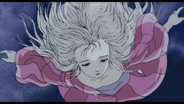 Hal-hal seperti bagaimana gadis itu membawa dirinya sendiri, reaksi yang terlihat dalam ekspresinya, hal itu melekat pada cara penyampaiannya dalam media animasi dan menjadikan Angel’s Egg jauh lebih istimewa dari dirinya sendiri, apalagi ketika Anda bisa melihat tinta di setiap helai rambut tipis Amano-nya. Saya menantang Anda untuk menemukan film lain dengan rambut yang menghipnotis ini. Saya bahkan tidak ingin memikirkan berapa lama waktu yang dibutuhkan untuk menggambar setiap bingkai dari setiap helai. Tapi saya suka memikirkannya, karena ini adalah salah satu dari banyak detail kecil dan cermat yang dapat Anda uraikan dalam upaya mengungkap filmnya.
