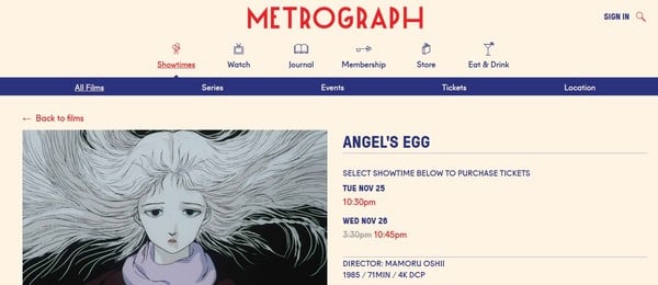 Waktu yang tepat. Dan lucunya, ini kedua kalinya saya melihat Angel’s Egg di layar perak. Apakah Anda ingin tahu bagaimana saya mengaturnya? (Ini tidak melibatkan perjalanan waktu.)