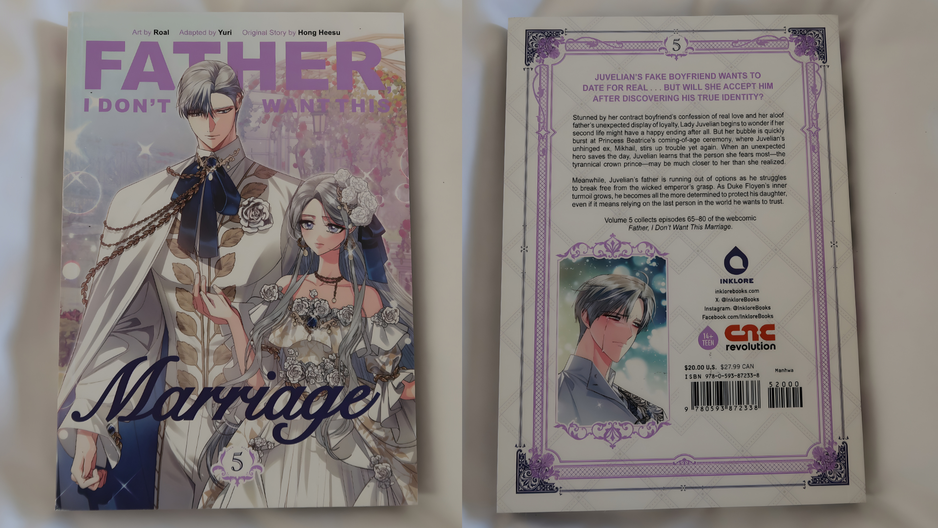 Ayah, Aku Tidak Ingin Pernikahan Ini Vol. 5 memukulku lebih keras dari yang kukira. Aku berpikir aku baru saja membaca sekilas drama itu, namun akhirnya aku menangis lebih dari sekali. Volumenya berisi perpaduan aneh antara kekacauan dan adegan manis yang menumpuk dengan cepat, dan beban emosional menyelinap sebelum Anda menyadarinya. Saya terus berpikir saya baik-baik saja sampai tidak, tidak baik sama sekali.