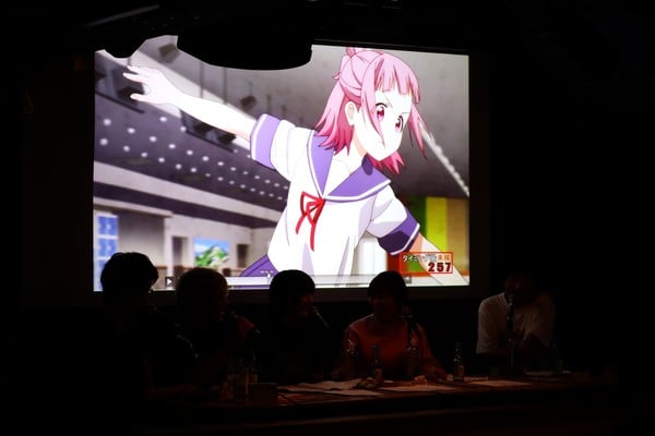 Una volta esplorate le scene preferite, Kitabayashi è passato alla sezione successiva del talk show: un punto in cui individuare la differenza tra il taglio originale e quello ripreso. Sono state presentate a Hishikawa, Hidaka e al pubblico due riprese del primo episodio della serie. I tagli in questione erano l’inquadratura in primo piano di Mai e l’inquadratura di lei che lanciava la palla da bowling. Le differenze erano minime, ma Ōishi ha spiegato come i capelli siano diversi nella ripresa in primo piano e c’è stato un cambio completo del modello per il secondo taglio. Il ragionamento per il cambio di modello era presentare Mai come un personaggio forte. Hidaka ha notato che Mai aveva un po’più di muscoli nella ripresa.