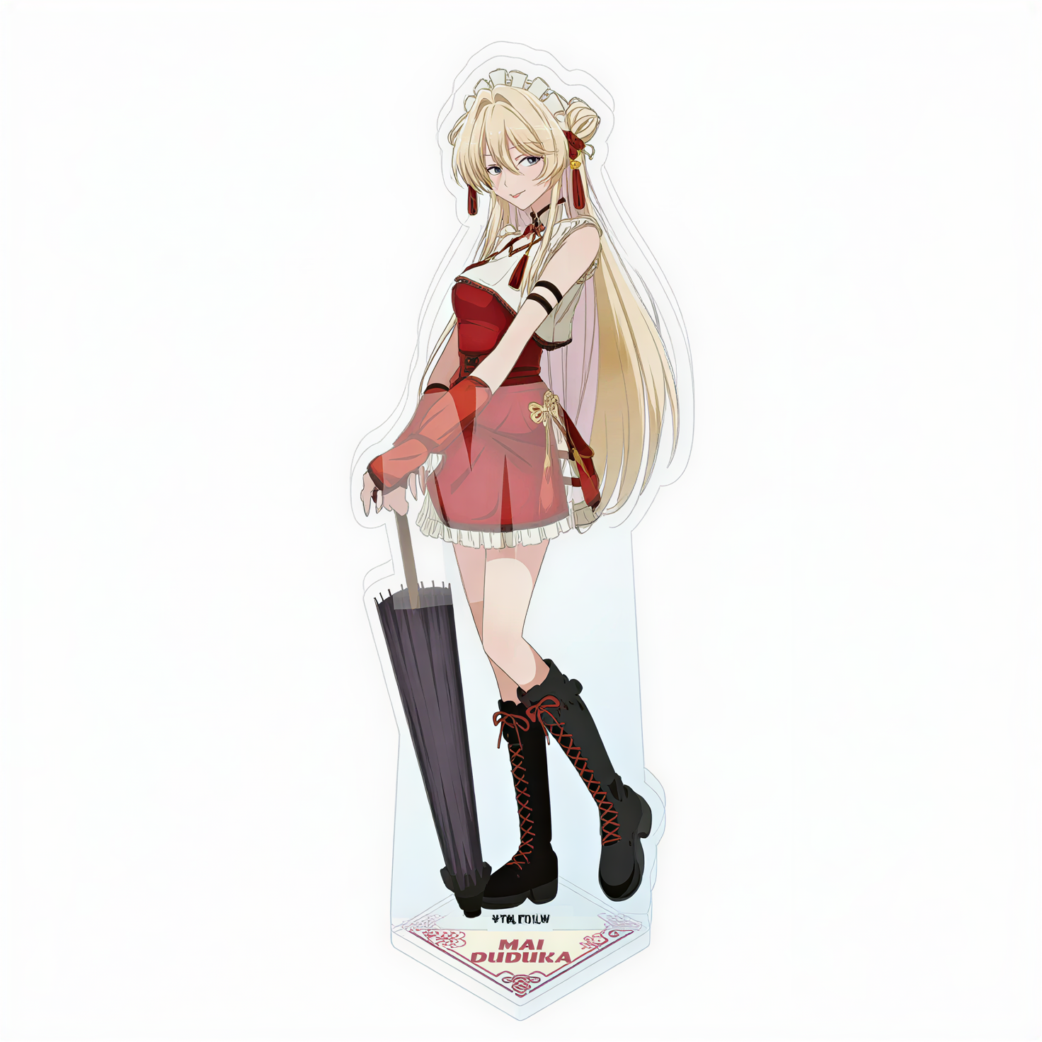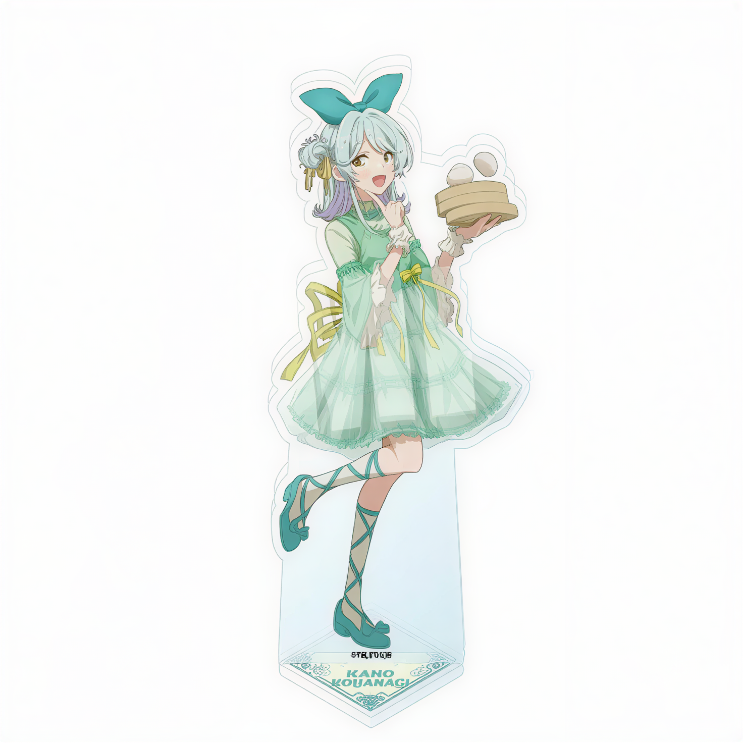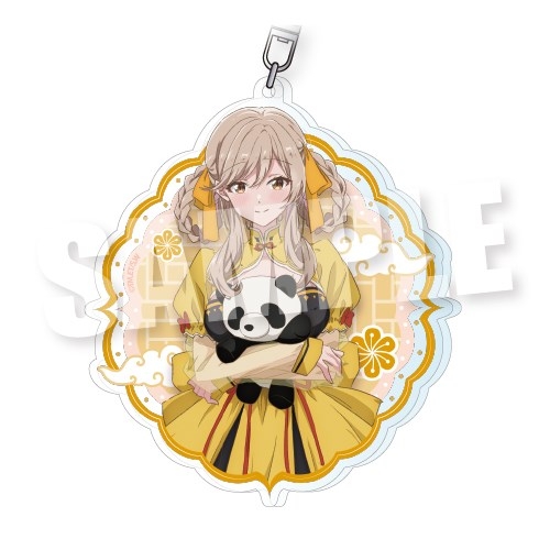 Stand in acrilico — ¥ 1980 (~ $ 13)Portachiavi in acrilico — ¥ 1100 (~ $ 7,20) Cancella file — ¥ 495 (~ $ 3,25) Set di cartoline — ¥ 1100 (~ $ 7,20) Arazzi — ¥ 8800 (~ $ 57,70) Distintivi di latta — ¥ 660 (~ $ 4,30) Carte collezionabili — ¥ 440 (~ $ 2,90)