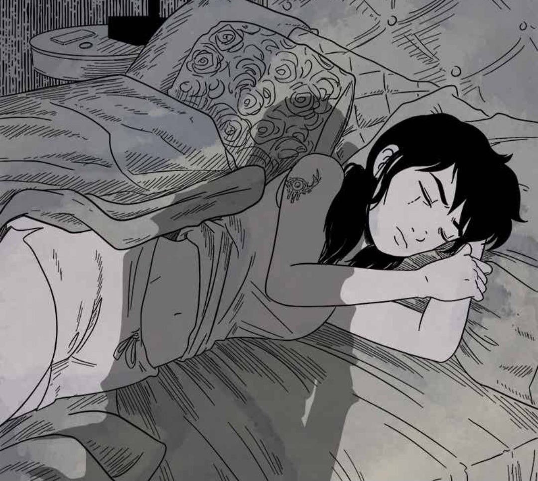 エピソードは深夜に公開されるため、多くの人は暗い中で読むか、ほとんど暗い中で読むだろうと言うでしょう。このシリーズの雨樋はすべて黒でしたので、それを見てみると、部屋は暗く、部屋は暗く、画像も暗く、ベッドで寝ている彼女のパネルが描かれています。すると廊下からその人が入ってくる。