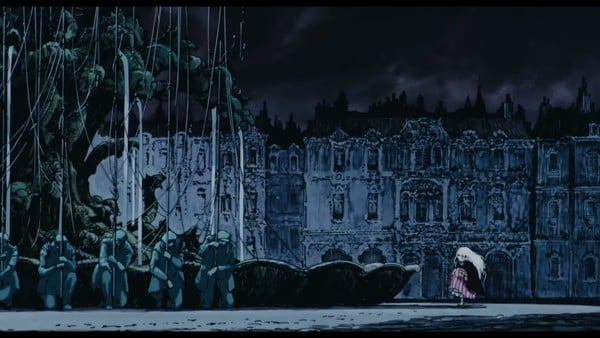 もっと言えば、常に抱きしめる者としていわゆる「気取った」ストーリーも好きですが、『天使のたまご』はまさに私のスピードにぴったりだと思いました!面白いのは、見せかけにもかかわらず、ある意味、歓迎されているように感じられることです。この種の最高の物語の多くがそうしているように、視聴者に自分の読みを持ち寄ってもらいます。おそらくそれが、先週初めて大部分の人口がそれを見た後、その周りの噂が非常に大きくなった理由です。 それは特異な芸術作品です。そして、これら 2 つの点を組み合わせると、その歓迎の感覚の多くは、それがどれほどゴージャスであるかによって決まると思います。もちろん、押井守と天野喜孝の功績は称賛に値しますが、芸術監督の小林七郎のことを抜きにして十分な会話はできないと思います。彼の背景は本質的にキャラクターであり、映画のゴシックなトーンと雰囲気にとって非常に重要です。