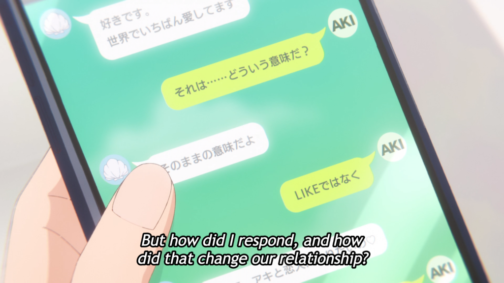 友達の妹は私にそれを入れています! の主人公、アキとショーの主要な恋愛対象の 1 つ、マシロの間の会話全文が残されました未翻訳。