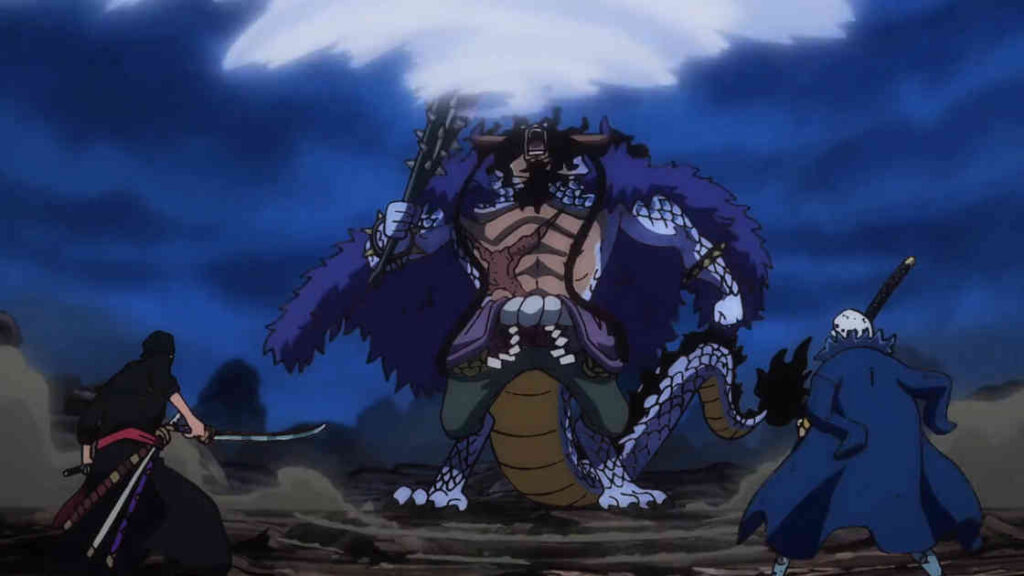 カイドウが彼の真の力を示したので、残りは反撃する方法について計画を立てる必要があります。彼の動きはより速くそしてより強くなった。ハイブリッドモードにより、カイドウの防御力も高まります。彼はすでに触れられませんでしたが、今ではほとんど破壊されていません。その上、彼は一人ではありません。ビッグママは彼のそばにいて、彼女の魂の人形の基本的な力で攻撃しています。彼女はほとんど緊張した困難な状況で迷惑をかけています。残りの人々が集中して再編成することは非常に困難です。