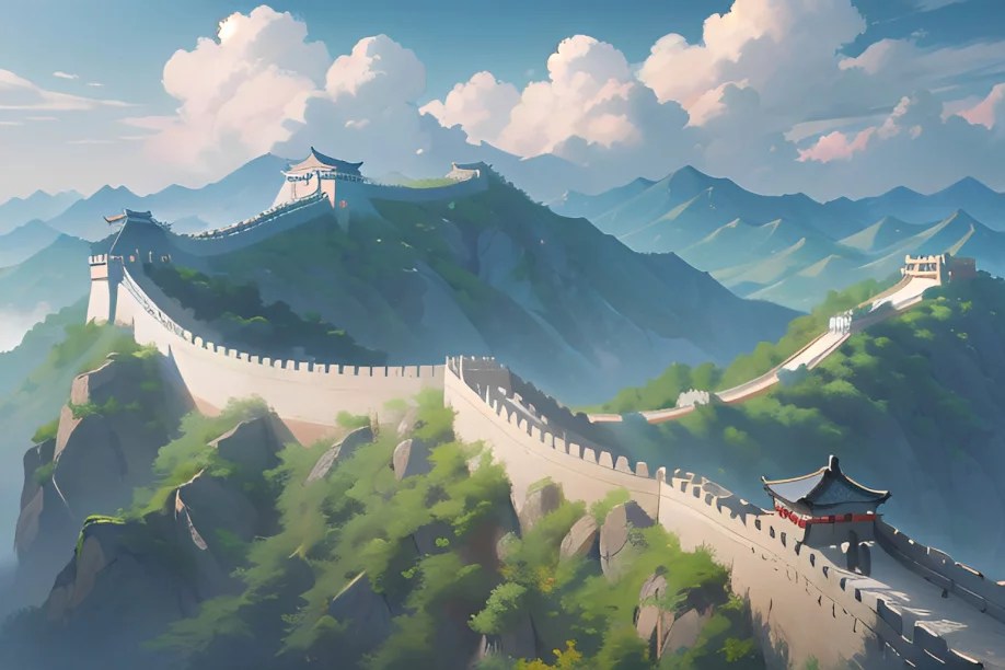 中国: 雄大な風景に広がる、アニメの世界の万里の長城は幻想的な姿をしています。