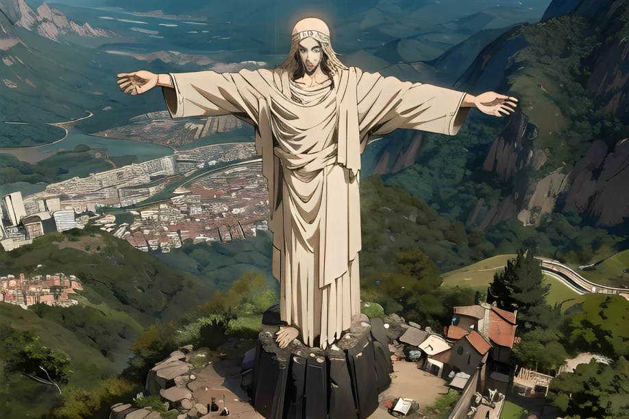 アニメの世界では、そびえ立つコルコバードのキリスト像が、眼下の活気に満ちた街を見下ろす守護霊となります。