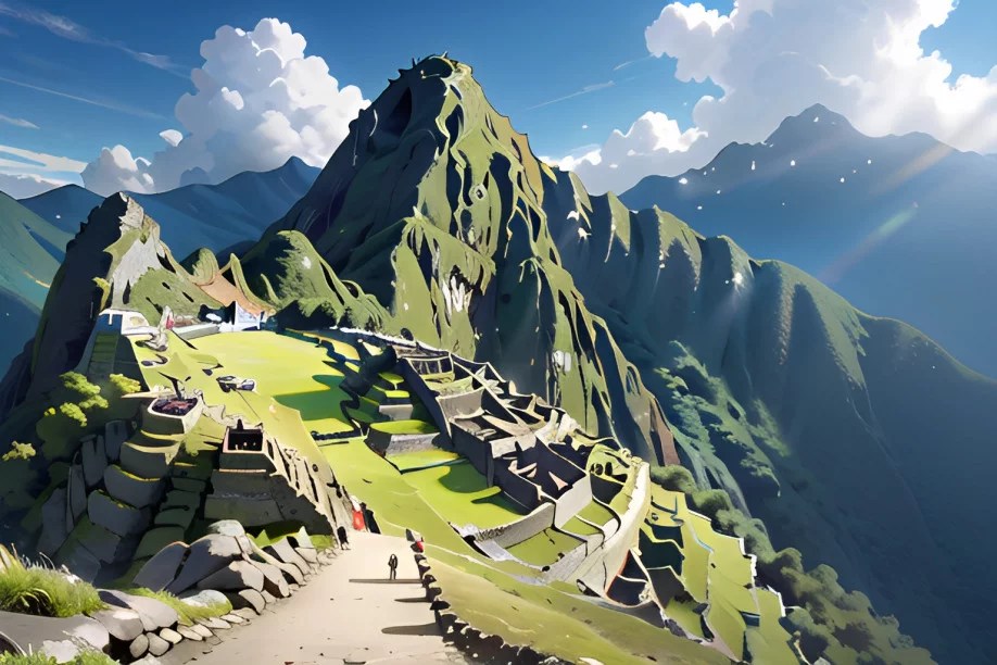アニメーションの緑豊かなジャングルの中で、マチュピチュはアニメの世界に隠された驚異の都市として現れます。複雑な階段を登ると壮大な寺院やテラスがあり、色とりどりの動植物が調和して繁栄しています。