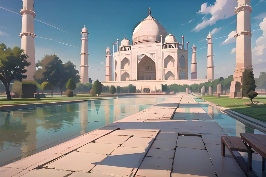 アニメにインスピレーションを得たバージョンのタージ マハルでは、白い大理石の宮殿が永遠の愛と美の証となります。アニメが溶け込んだこの世界では、タージ マハルは単なる記念碑ではなく、生きた存在です。