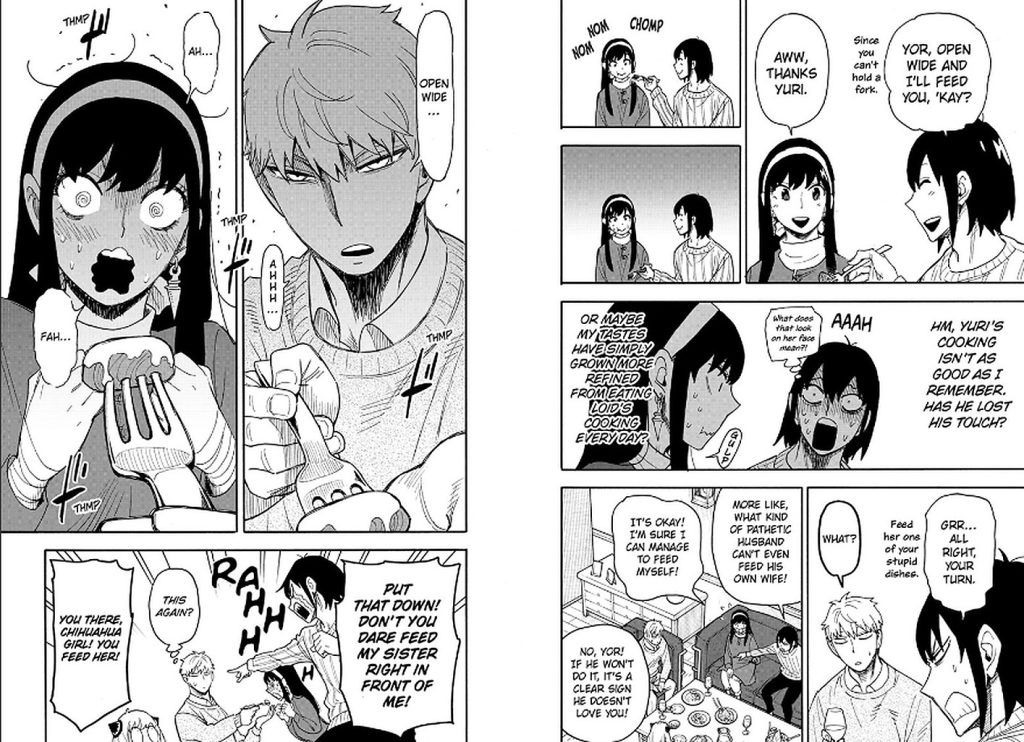 Spy X Family Chapter 69 သည် Yuri ၏ Loid ၏အိမ်သို့ ပြန်လာခြင်းကို သက်သေခံလိမ့်မည်။ သို့သော် ယခင်အခန်းသည် Loid ကို များစွာ ထိခိုက်စေခဲ့သည်။ ဒါပေမယ့် Yuri က သူ့ညီမကို လွယ်လွယ်နဲ့ ထားမသွားတတ်တဲ့ ယောက်ျားတစ်ယောက်ပါ။ Yor ပျော်ရွှင်စေရန် Loid နှင့် Yuri တို့ကြား ပြိုင်ဆိုင်မှုတစ်ခု ရှိခဲ့သည်။ Yuri သည် သူ့ညီမအတွက် အမြဲစိုးရိမ်နေရသည်။ သို့တိုင်၊ Yuri သည် ယခင်အခန်းတွင် Loid အား မတူညီသောပြိုင်ပွဲများတွင် ရှုံးနိမ့်ခဲ့သည်။