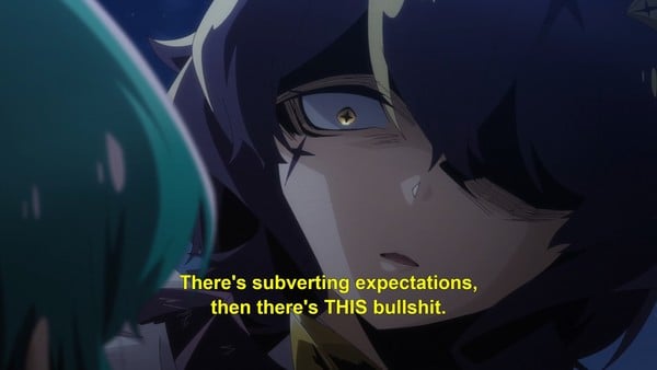 Тусгай хэрэгцээт хүүхдүүдтэй ажилладаг хүний хувьд яг ийм байдалд орсон. Тога энэ том өгүүллэгт хаана багтаж байгаа, орчин үеийнхтэй яг ижил төстэй байх ёстой бүх контекстийг олж авах нь надад үнэхээр сэтгэл эмзэглүүлсэн юм. Тога найзтай, хамгийн эгэл жирийн зүйлсийн талаар ярилцах хүн эсвэл түүнд хааяа бага зэрэг цус урсгаж, инээмсэглэж байх хэн нэгэн хэрэгтэй байв. Урарака түүнийг дэлхийн хамгийн өхөөрдөм охин гэж хэлээд түүнийг барьж авсан энэ мөч үнэхээр сэтгэл хөдлөм байлаа, учир нь хэрвээ хэдхэн жилийн өмнө ийм зүйл болсон бол эдгээр дүрүүдийн аль нь ч тийм биш байх байсан гэдгийг та хэлж чадна. Тэдний байгаа аюултай нөхцөл байдалд. Хоёр хэлээр гарч буй хоолой нь маш их өвдөлт, эгдүүцлийг дагуулж, анги дууссаны дараа би гартаа мэгшин уйлж байлаа. Бүтээлтээс эхлээд цаана нь тоглож буй танил лейтмотивүүд, хөдөлгөөнт дүрс, тэр ч байтугай энэ нь төгс шийдэл эсвэл ялалт биш гэдгийг хүлээн зөвшөөрсөн бүх зүйл энэ мөчийг миний эх материалаас уншсан зүйлээс илүү өндөрт өргөв. Энэ бол энэ жилийн миний хамгийн дуртай мөчүүдийн нэг биш, магадгүй бүх цаг үеийн анимэ дахь миний хамгийн дуртай мөчүүдийн нэг юм.