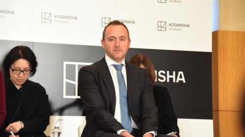 निर्माता निकोलस गोन्डाले पत्रकार सम्मेलनमा कोडांशा स्टुडियोको घोषणा गर्दै | क्रेडिट: Kodansha, Comic Natalie