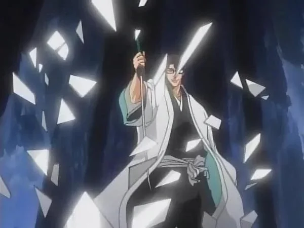 Aizen’s Zanpakutō, Kyōka Suigetsu, induce „Hypnoza completă” odată Abilitatea manipulează toate cele cinci simțuri, lăsând Aizen să controleze percepția de mărime, formă, locație, mișcare și chiar prezența altora. Acest efect persistă la nesfârșit după o singură expunere, permițând înșelăciuni pe termen lung. Comanda de eliberare este tradusă în mod obișnuit ca „Shatter”, alinându-se cu tema sa de a rupe aspectul realității.
