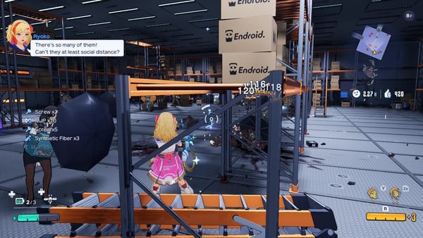 În mod similar, limba școlăriței Full Metal este ferm înfiptă în obraz, cu elevele sale mecanizate care se înfruntă cu lucrători de birou roboti-și se transmit în direct în timp ce o fac (de unde „CashChats”). De fiecare dată când mă năpustesc, mă face să zâmbesc să văd că „șosetele largi” pe care le poartă personajele ascund de fapt booster-uri montate pe picioare. De asemenea, primești ocazional și gaguri de fundal, cum ar fi Working Dead care are un kabedon romantic în casa scărilor. Dar, ca orice tip de mass-media grindhouse, unele dintre ele ar putea refuza o posibilă audiență. Este destul de simplu când una dintre fetele tale urcă scările cu mâna în spate, amintindu-i publicului să nu se uite în sus. Este puțin mai rău când procesul de upgrade din joc implică cyborgul tău adolescent înlănțuit de o placă, întins, în timp ce un om de știință nebun îmbrăcat puțin îmbrăcat în bikini practic saliva la șansa de a pune mâna pe ei (“Relaxează-ți mușchii!”, spune ea în timp ce mâinile ei strânse se apropie de cameră). În spiritul vibrațiilor de concept înalt ale Full Metal Schoolgirl, înțeleg de unde vin. Dar cu siguranță este ceva pentru care publicul trebuie să fie pregătit. De asemenea, având în vedere contextele din lumea reală, ideea unui adolescent înarmat care se transmite în direct în timp ce rulează în picioare într-o clădire de birouri ar putea fi declanșatoare pentru unii.