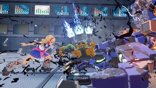 În timp ce jocul îți oferă de la început două școlari de alegere, tu alegi una pentru joc. Pe care o alegeți este pur estetic. Ceea ce contează mai mult (și este mai distractiv) sunt alegerile tale de arme: ai o varietate de arme pe care le poți lega pe brațele școlii tale cyborg (o armă de corp la corp, o armă la distanță), fiecare armă comportându-se diferit. De exemplu, ferăstrăile cu lanț au cerințe mari de energie, dar obțin mai multe lovituri, în timp ce lamele de braț provoacă daune ceva mai puțin, dar o gamă mult mai largă cu combo-urile lor. Există o mulțime de spațiu pentru experimentare atunci când luați în considerare nu numai varietatea de arme, ci și varietatea abilităților cu arme. Mi-a plăcut să folosesc lanțurile ca opțiune la distanță și m-am trezit rupt între o variantă cu gloanțe care sări și o variantă care a provocat mai multe daune cu cât continuai să tragi. Aceasta este peste mișcările tale de pedeapsă, care servesc drept super-mișcări; acestea variază doar puțin în funcție de încărcare.