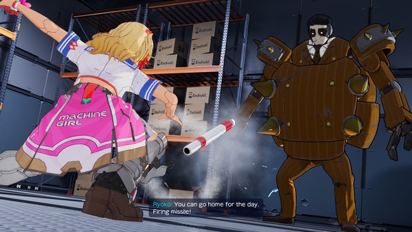 În mod similar, limba școlăriței Full Metal este ferm înfiptă în obraz, cu elevele sale mecanizate care se înfruntă cu lucrători de birou roboti-și se transmit în direct în timp ce o fac (de unde „CashChats”). De fiecare dată când mă năpustesc, mă face să zâmbesc să văd că „șosetele largi” pe care le poartă personajele ascund de fapt booster-uri montate pe picioare. De asemenea, primești ocazional și gaguri de fundal, cum ar fi Working Dead care are un kabedon romantic în casa scărilor. Dar, ca orice tip de mass-media grindhouse, unele dintre ele ar putea refuza o posibilă audiență. Este destul de simplu când una dintre fetele tale urcă scările cu mâna în spate, amintindu-i publicului să nu se uite în sus. Este puțin mai rău când procesul de upgrade din joc implică cyborgul tău adolescent înlănțuit de o placă, întins, în timp ce un om de știință nebun îmbrăcat puțin îmbrăcat în bikini practic saliva la șansa de a pune mâna pe ei (“Relaxează-ți mușchii!”, spune ea în timp ce mâinile ei strânse se apropie de cameră). În spiritul vibrațiilor de concept înalt ale Full Metal Schoolgirl, înțeleg de unde vin. Dar cu siguranță este ceva pentru care publicul trebuie să fie pregătit. De asemenea, având în vedere contextele din lumea reală, ideea unui adolescent înarmat care se transmite în direct în timp ce rulează în picioare într-o clădire de birouri ar putea fi declanșatoare pentru unii.
