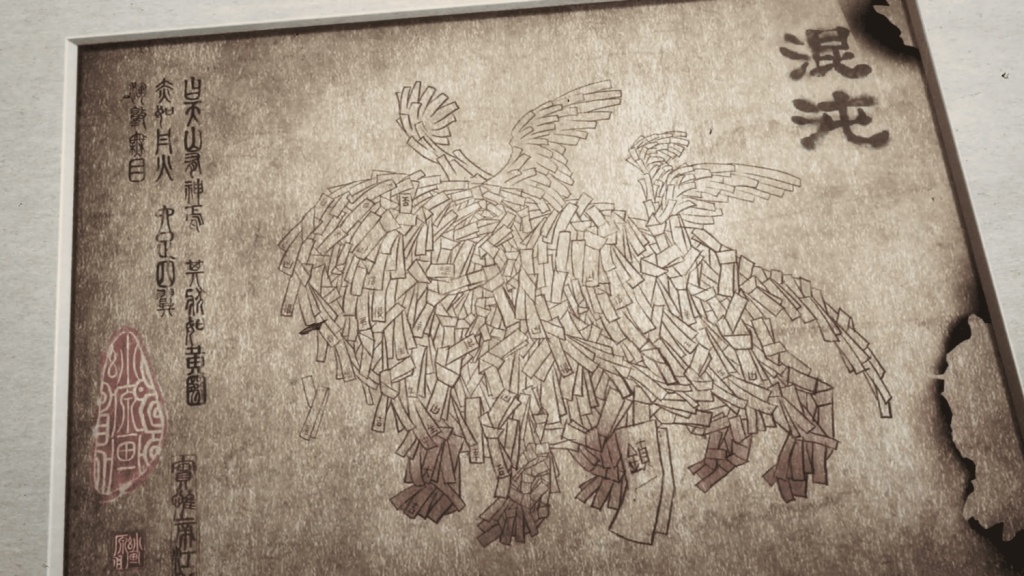 Hundun (混沌) đề cập đến sự hỗn loạn nguyên thủy, nhưng nó cũng có thể là tên của một sinh vật huyền thoại trong thần thoại Trung Quốc tồn tại trước khi vũ trụ được tạo ra. Nó thường được miêu tả là một con quái vật không có khuôn mặt với nhiều cánh và chân. Tình cờ thay, tôi cũng biết đến nó qua anime Lazarus, trong đó nó là điểm cốt truyện của một nhân vật nào đó.