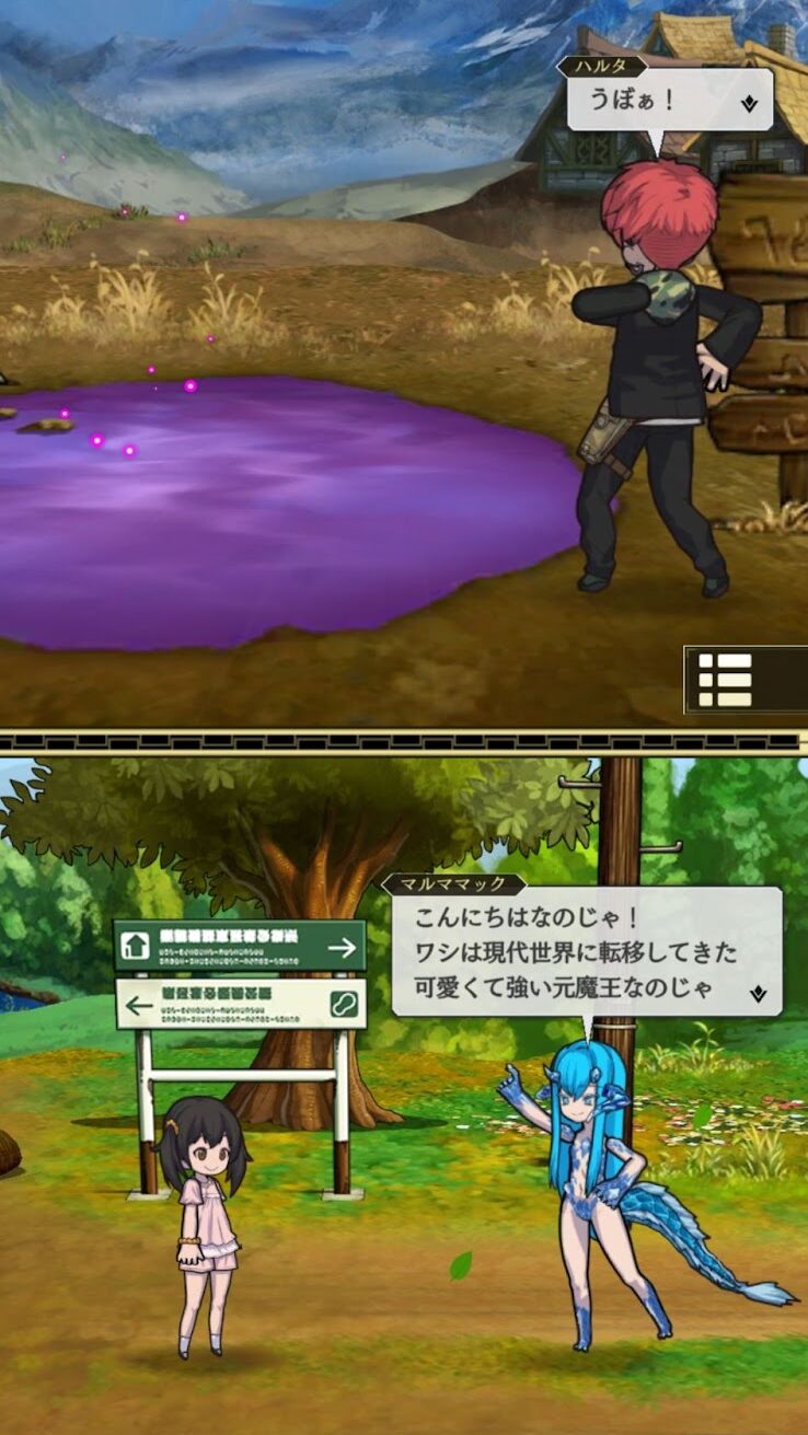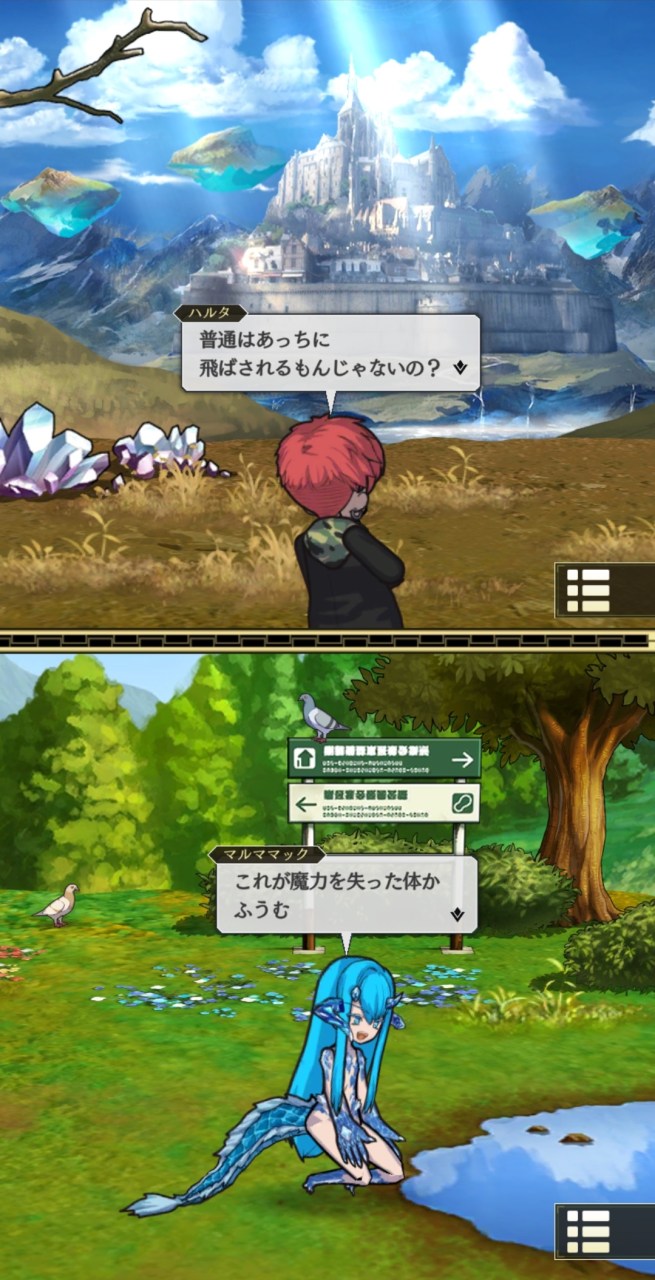 World II Thế giới được xây dựng dựa trên JRPG chung và thử nghiệm với bộ đôi nhân vật chính theo đúng nghĩa đen; nhân vật chính nổi bật có thể được hoán đổi bất cứ lúc nào chỉ bằng một cú chạm vào phần trên cùng hoặc dưới cùng của thiết bị bất cứ lúc nào bất kể điều gì đang xảy ra, ngay cả khi đang chiến đấu.