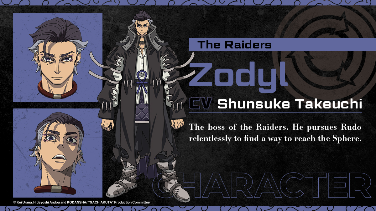 Zodyl fungeert als leider van de Raiders-een groep in strijd met de schoonmakers-die”Rudo meedogenloos achtervolgt om een manier te vinden om de sfeer te bereiken.”
