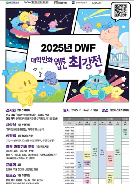 De Koreaanse stad Daejeon kondigde op 11 november aan dat zij gastheer zal zijn voor de University Webtoon 2025 Kampioenschap in de Daejeon e-Sports Arena van 14 tot 16 november.