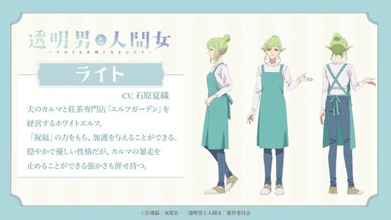 Kaori Ishihara som lett, en mild og snill hvit alv som er sammen med te-butikken med mannen sin Karma
