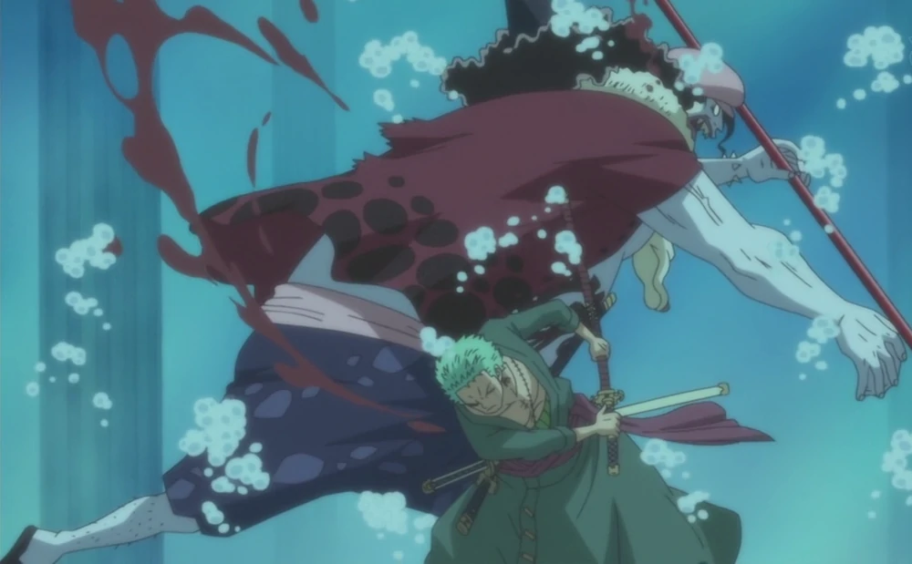 Enma: Mesterverket til den legendariske sverdsmeden Shimotsuki Kozaburo og en av de 21 O Wazamono, Enma er et av de beste sverdene i verden, med Kozuki Hiyori vurderer det som en verdig erstatning selv for den legendariske Shuusui. Tenguyama Hitetsu beskrev Enma som å være i stand til å”skjære ned i dypet av underverdenen”(ved siden av at Ame no Habakiri kunne”skjære selve himmelen”). Ame no Habakiri: Ame no Habakiri er en Meito som tilhørte Kozuki Oden, som brukte den med en annen Meito, Enma. Det er en av de 21 O Wazamono og ble smidd av Tenguyama Hitetsu som anser det som sitt mesterverk. Mesterverk av sverdsmed Tenguyama Hitetsu og en av de 21 O Wazamono, Ame no Habakiri er et av de beste sverdene i verden. Shusui: Som O Wazamono er Shusui blant de trettito beste katanaene i verden. Det regnes som nasjonalskatten til Wano Country og er sverdet som muliggjorde den legendariske samuraien Ryumas bedrifter. Etter mange kamper ved hans side ble sverdet et svart blad. Før han kjøpte Enma, var Zoro overbevist om at Shusui kom til å bli avgjørende i kampen mot Kaidos Hundred Beasts Crew. Wado Ichimonji: Som en av de trettito beste katanaene i verden (elleve Saijo Ô Wazamono og tjueen Ô Wazamono), er Wadô Ichimonji et ekstremt kraftig blad, i hendene på en kompetent sverdmann. Han er ekstremt tøff, og har et slitesterkt blad, som antydet av Mihawk, da han ødela både Zoros sverd og bare Zoro gjorde motstand. Nidai Kitetsu: Nidai Kitetsu er et sverd som er et av de 21 sverdene i Ô Wazamono-kategorien. Det er en del av de forbannede sverdene skapt av Kitetsu sammen med Shodai Kitetsu og Sandai Kitetsu. Den ble smidd av Kotetsu. Lite er kjent om Nidai Kitetsu og dens evner. Imidlertid må denne sabelen også være kraftig og motstandsdyktig siden den er en del av 21 O Wazamono.