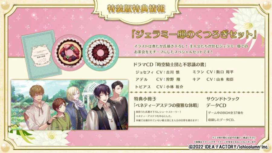 En spesialutgave av spillet vil være tilgjengelig, som inneholder Geramy Mansion Kutsurogi-settet, som inkluderer Knights of Time og Book of Mystisk drama-CD, en CD med lydspor og et bonushefte.