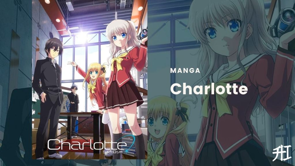 Charlotte er en emo-anime om en fyr som heter Yuu som har spesielle krefter som lar ham gjøre ting som å kontrollere folks minner. Men fangsten er at han bare kan bruke kreftene sine i en viss tid før han begynner å miste sine egne minner. Så han må være forsiktig med hvordan han bruker dem. Uansett, det er denne organisasjonen som heter Hoshinoumi Academy som er dedikert til å finne og hjelpe barn med spesielle evner som Yuu, og Yuu ender opp med å bli med dem.