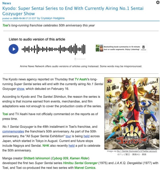 Jak wskazałeś w swoim komentarzu otwierającym na temat Super Sentai, bycie zakorzenionym dzieckiem seriale w Japonii niekoniecznie gwarantują ciągłą kontynuację emisji. Nie, proszę pana, istnieje cały wszechświat bohaterów (i szybko zmieniające się warunki rynkowe), z którym musi się zmierzyć każdy długotrwały serial. Cóż, przynajmniej możemy mieć nadzieję, że wyjdą ZWYCIĘSKIE, jeśli i kiedy nadejdzie czas.