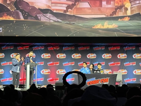 ภาพถ่ายโดย BoltsToei Animation ดึงจุดแวะทั้งหมดมาได้เมื่อมาถึงแผงพิเศษของ One Piece ที่ New York Comic Con 2025 ไม่เพียงแต่จะมีแขกรับเชิญโดย Ian Sinclair และ Madeleine Morris เสียงภาษาอังกฤษของ Brook และ Lilith ตามลำดับ แต่ยังมีการปรากฏตัวพิเศษโดย Ryūta Koike โปรดิวเซอร์ของอนิเมะ One Piece และผู้กำกับซีรีส์คนปัจจุบัน Wataru Matsumi อีกด้วย เช่นเดียวกับปกติ การแสดงตนเชิงบวกอย่างล้นหลามของเอียน ซินแคลร์ช่วยสร้างบรรยากาศให้กับทั้งคณะในขณะที่เขาช่วยเจ้าภาพในการถามคำถามกับแขกอีกสามคน เขากล่าวว่ารู้สึกเป็นเกียรติที่ได้เป็นส่วนหนึ่งของแฟรนไชส์นี้มานานกว่าทศวรรษ ณ จุดนี้ และเขาเป็นแฟนตัวยงของซีรีส์นี้ก่อนที่เขาจะได้รับเลือกให้เป็นนักดนตรีโครงกระดูก
