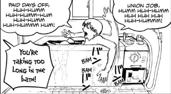 สันนิษฐานว่า การเมืองของการเป็นการผลิต MAPPA ยังเป็นอุปสรรคต่อการเมืองของข้อความต้นฉบับด้วย นี่เป็นตัวอย่างที่งี่เง่า แต่ในมังงะ เดนจิกล่าวถึงเป็นพิเศษว่างานใหม่ของเขาที่รวมตัวกันอย่างเห็นได้ชัด ช่วยให้เขามีองค์ประกอบคุณภาพชีวิตขั้นพื้นฐานที่เขามีความสุขได้อย่างไร ในขณะที่อะนิเมะทำให้เขาฮัมเพลงในอ่างอาบน้ำ หากสหภาพแรงงานไม่สามารถถูกกล่าวถึงว่าเป็นเรื่องตลกในอนิเมะ CSM ได้ ฉันไม่เชื่อว่าการทำซ้ำงานนี้เพื่อนำเสนอต่อการวิพากษ์วิจารณ์ทางสังคมที่รุนแรงซึ่งมีบทบาทสำคัญในความรักของฉันต่อมังงะต้นฉบับ