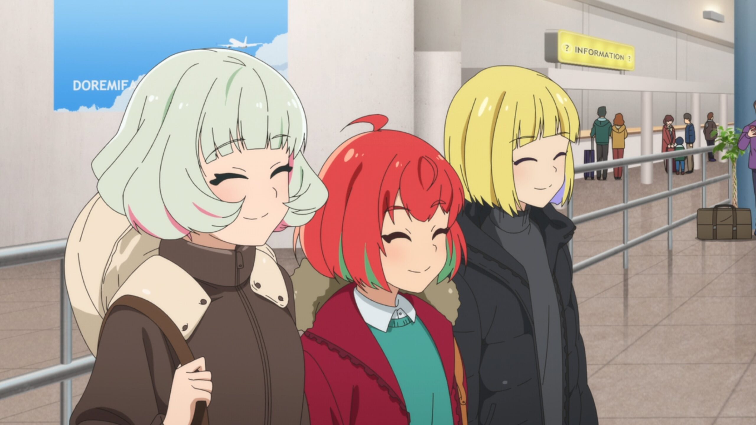 บนเครื่องบิน เด็กสาวคนหนึ่งมีอาการหอบหืดเช่นเดียวกับที่คานาได้รับกลับมาสองสามครั้ง กลุ่มร้องเพลงไพเราะเพื่อบรรเทาความเจ็บปวดและความรู้สึกไม่สบายของเด็กสาว ตอนและซีซันจบลงด้วยเพลงไพเราะของฮิบิกิ Kana และ Reimi