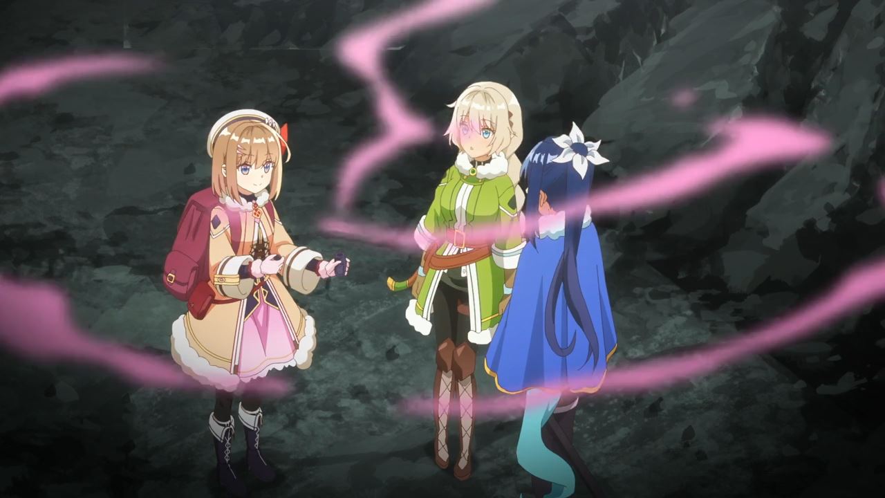 โชคดีที่ Sarasa สร้างขึ้น กำแพงเพื่อป้องกันไม่ให้ค้างคาวโจมตีผู้รวบรวม ดีใจที่นักเล่นแร่แปรธาตุรุ่นเยาว์มาช่วยพวกเขา!