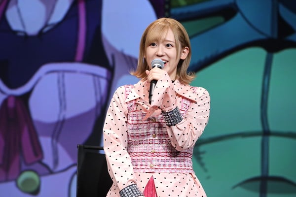 ในฐานะแฟนของ JoJo’s Bizarre Adventure ออกจากศาลาท่าเรือทาเคชิบะ เมืองท่าโตเกียว โชโงะ ซากาตะ โยเฮ อาซาคามิ ไคโตะ อิชิกาวะ ริเอะ ทาคาฮาชิ และเคนตะ มิยาเกะ ปรากฏตัวบนเวทีสำหรับการแถลงข่าวครั้งสุดท้าย