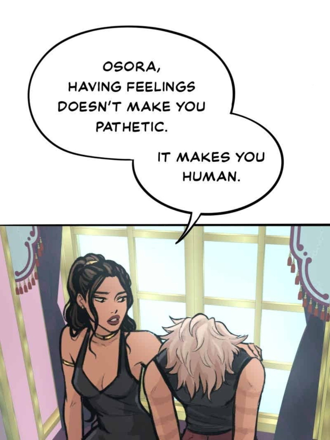 ToniRenea: ฉันคิดว่าสำหรับฉันเหมือนสิ่งยิ่งใหญ่ที่สุดที่รั้งฉันไว้โดยทั่วไปเมื่อฉันเริ่มต้นครั้งแรกแม้กระทั่งในช่วงเริ่มต้นของต้นฉบับด้วยซ้ำ ฉันจะมุ่งความสนใจไปที่สิ่งที่ฉันจะย้อนกลับไปอ่านบางสิ่งบางอย่างจากปีที่แล้วและพูดว่า”โอ้พระเจ้า ฉันเกลียดที่ฉันดึงหัวของเขา ฉันเกลียดที่ฉันวาดเขา” ฉันจะกลับไปต่อและนี่คือ Osora ทุกรุ่น