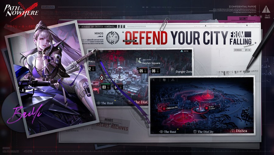 Nagtatampok ang Path to Nowhere ng hanay ng mga klase ng Sinner, na nagpapagana ng iba’t ibang mga taktikal na tungkulin at pagtutugma sa ang larangan ng digmaan para sa mga manlalaro upang masiyahan sa scheming ang pinaka-pinong diskarte. Para sa mga manlalaro na humahabol ng mabilis na pagpatay sa labanan, ang mabilis na kidlat na swordsmanship ni Bai Yi, ang misteryosong mamamatay-tao, ay magiging isang magandang opsyon. Magagawa ni Bai Yi ang dose-dosenang mga kalaban sa loob ng ilang segundo na i-cast ang kanyang ultimate skill na”Instant Kill”.